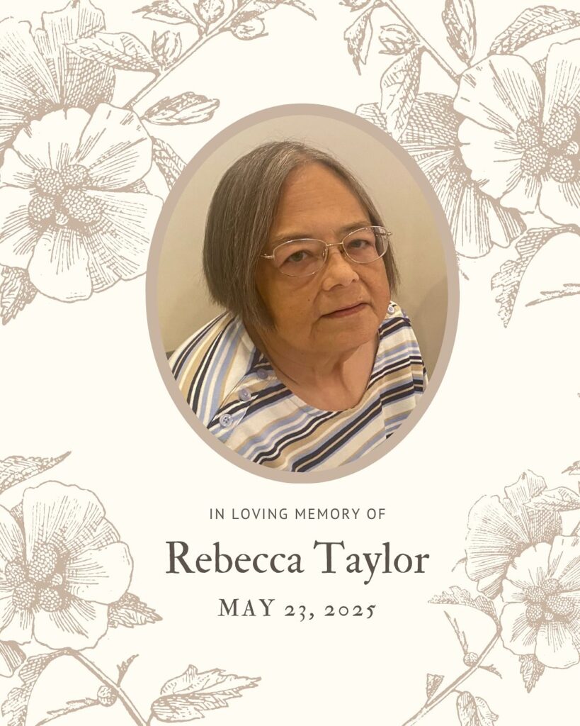 It is with heavy hearts that we share the passing of our cherished Secretary and Board Member, Rebecca Taylor, on Friday, May 23rd, 2025.